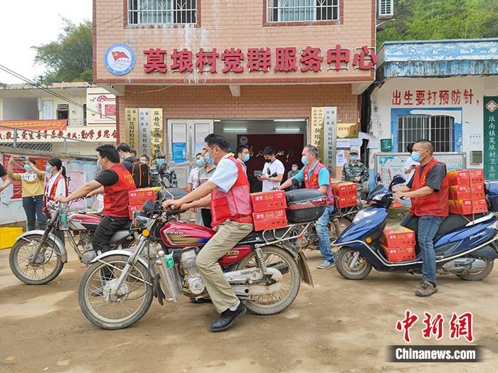 村民自发使用摩托车运送救援物资
