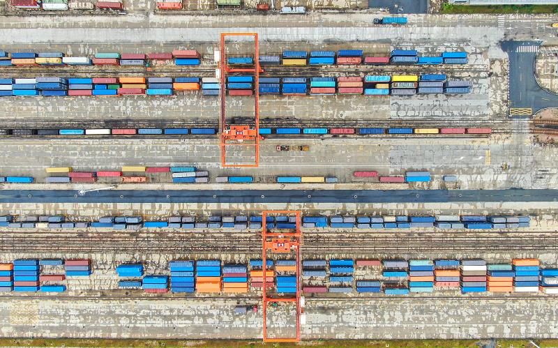 航拍江西赣州国际陆港 雨后初晴正繁忙