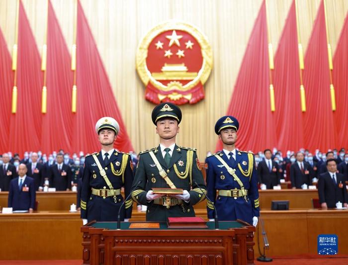 新当选的全国人大常委会委员长赵乐际进行宪法宣誓