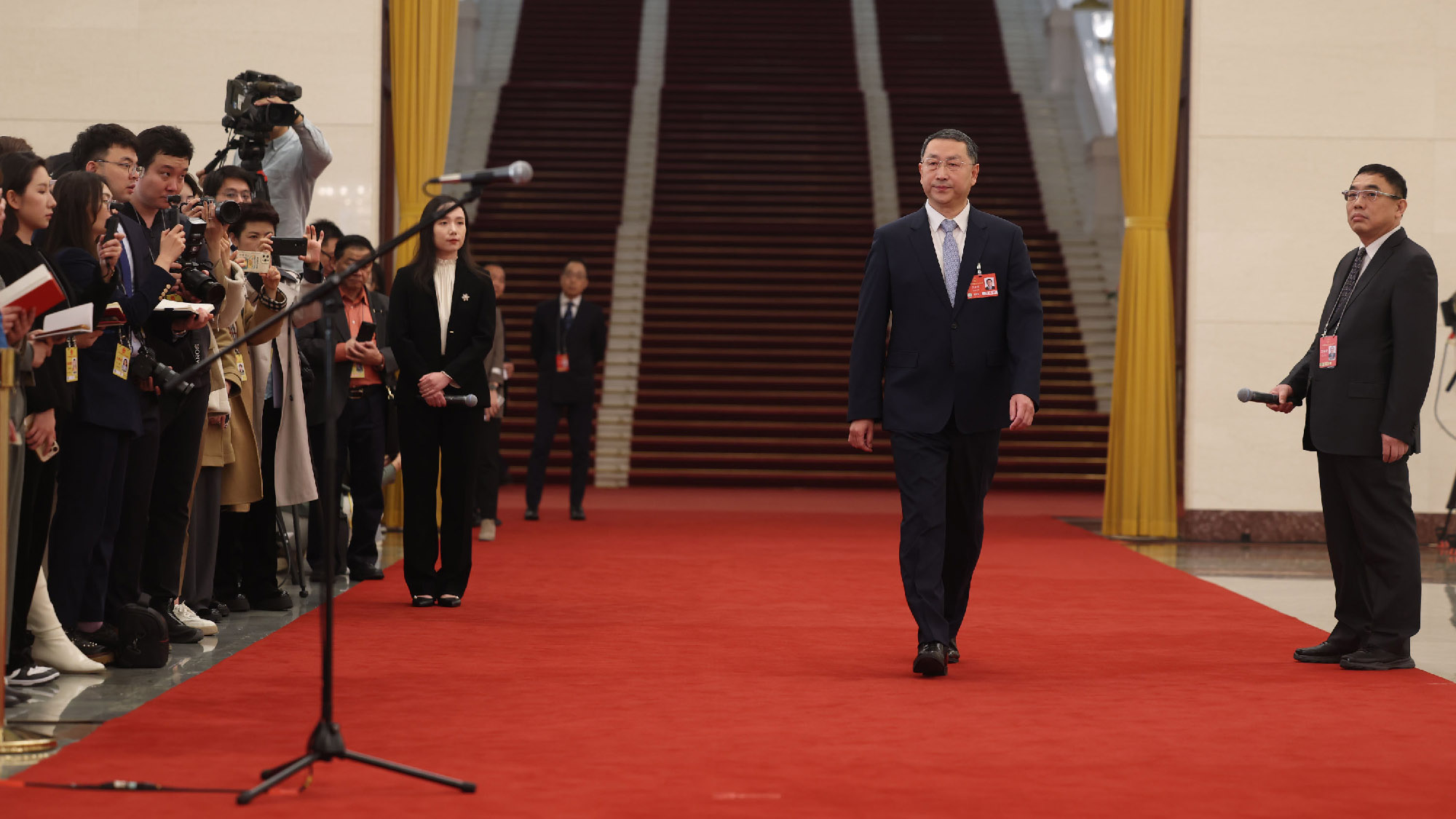 3月11日下午闭幕会后,在人民大会堂北大厅举行十四届全国人大三次会议第三场“部长通道”集中采访活动,邀请部分列席会议的国务院有关部委主要负责人接受采访。