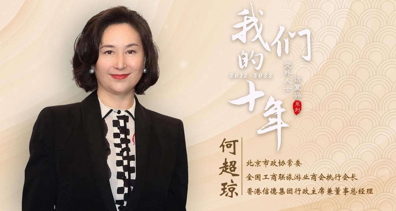 过去十年,何超琼致力推动国家及澳门的文旅事业发展,并打造出 “世界旅游经济论坛”,促进全球旅游产业可持续发展。她又担任香港妇协主席,在“黑暴”事件中正义发声。作为企业家,何超琼更是亲眼见证了港澳两地回归后的发展变化。她说,我们在港澳地区也要统筹起来,发挥桥梁的作用,依靠国家,也要融进国家发展大局。