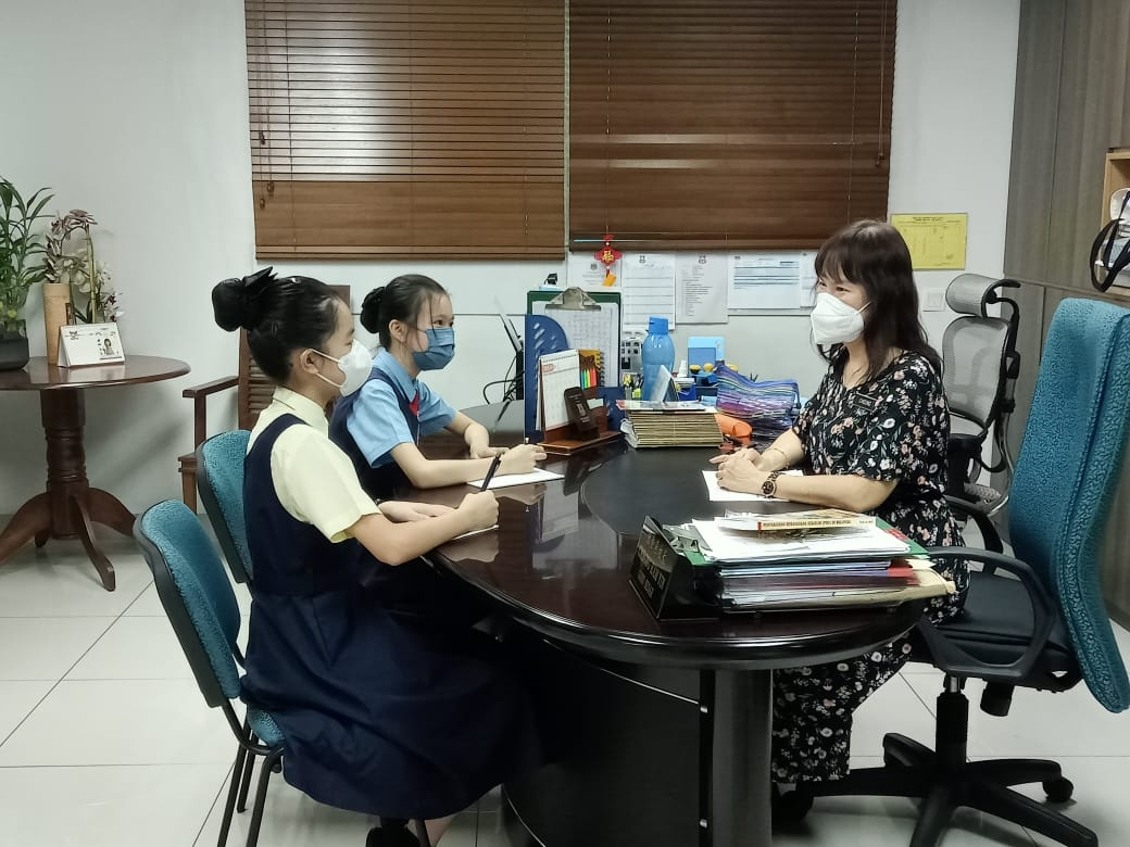 2022年7月4日下午一时半,吉隆坡坤成华小一校Z世代华星小记者第二期校园专访正式开始。第二期校园专访,徐瑀瞳同学和陈思颖同学,通过小记者采访室即谷歌视频会议,连线对坤成华小一校的校长——张金燕校长进行线上采访。