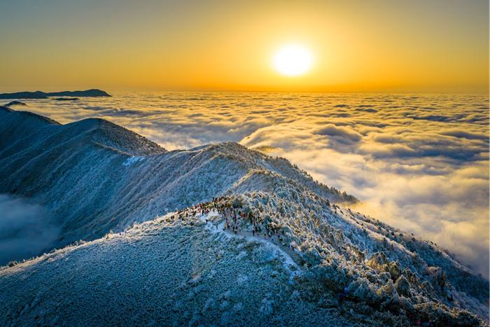 雾凇云海同框 湖南张家界天门山现冬日限定奇观