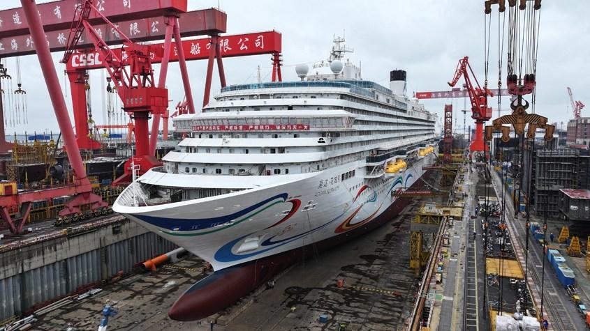 (新春走基层)第二艘国产大型邮轮“爱达·花城号”主体建造基本完成