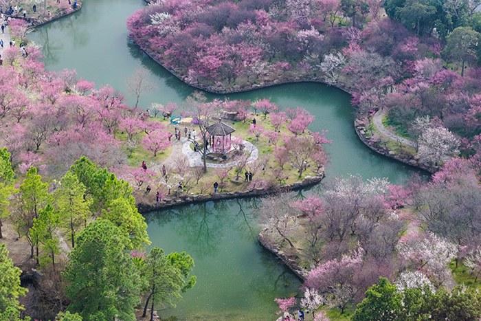 瘦西湖梅花进入盛花期 吸引游客踏春赏花