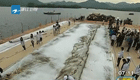 男子发现鸭子被冻湖面 跳湖破冰救援