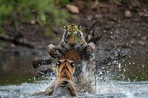 两只老虎上演“全武行”