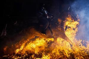 西班牙骑手越过火焰