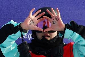 谷爱凌咬金牌庆胜利