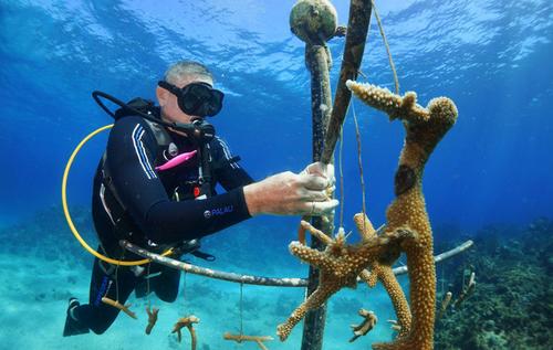 潜水员海底“造林”