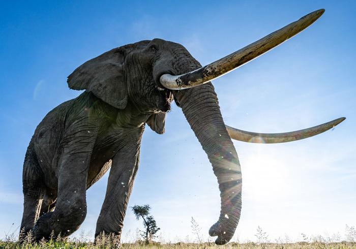 大象与相机近距离互动