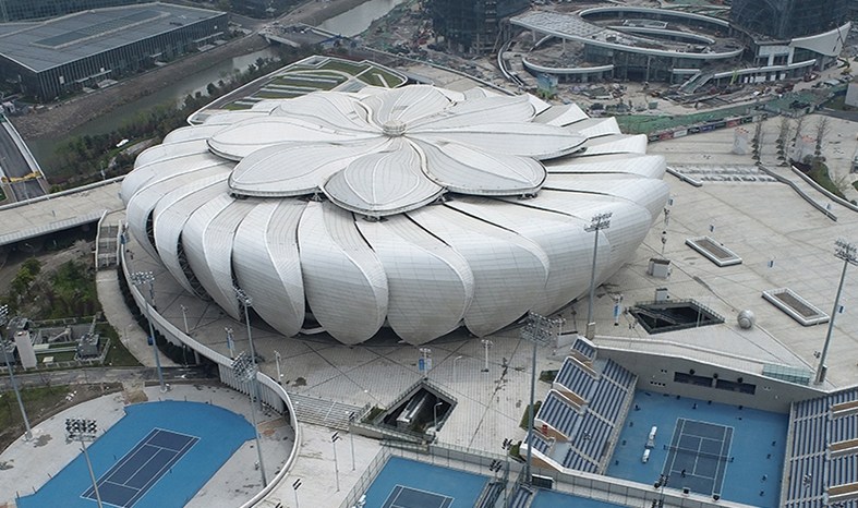 杭州奥体中心网球中心俗称“小莲花”,为亚运会网球项目比赛场馆及训练场馆,位于杭州市滨江区、杭州城市新中心,距离亚运村约3公里。场馆用地面积3.05万平方米,建筑面积523000平方米,座席数约10000个。