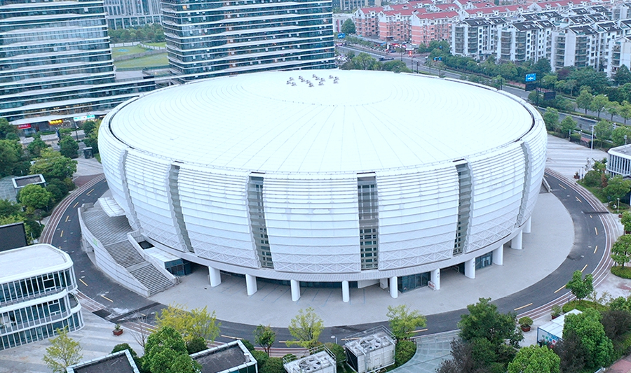 滨江体育馆为亚运会羽毛球项目比赛场馆及训练场馆,位于杭州市滨江区,含主比赛馆及热身馆。总建筑面积58224平方米,观众席位数3900个。