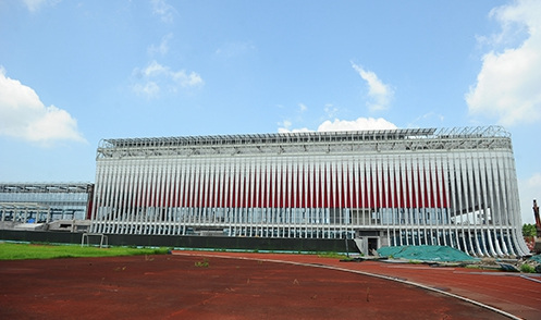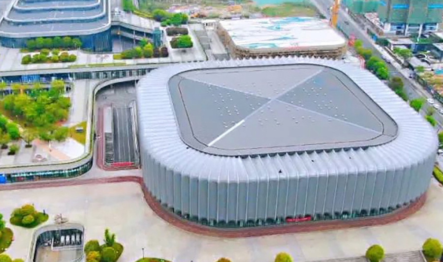 临平体育中心体育馆为亚运会武道(空手道)、排球项目比赛场地,位于杭州市临平区,含比赛馆及热身馆。总建筑面积16888平方米,观众席位数3340座。