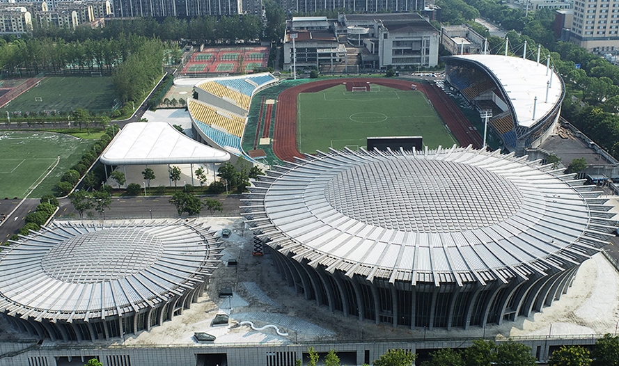 萧山体育中心体育馆为亚运会举重项目比赛场地,位于杭州市萧山区,地处亚运村东南方向且相距约11.7 公里,含比赛馆及相关赛事服务用房。总建筑面积10802平方米,观众席位数1901个。