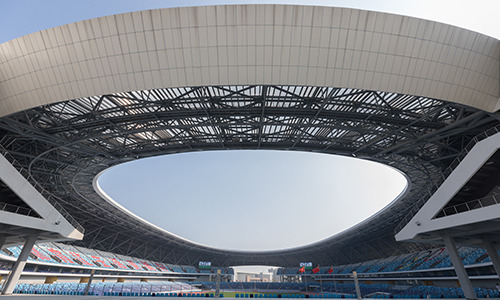 上城体育中心体育场为亚运会足球项目比赛场地,位于杭州市上城区,地处亚运村西北方向且相距约9.5公里。总建筑面积16063平方米,观众席位数13544座。